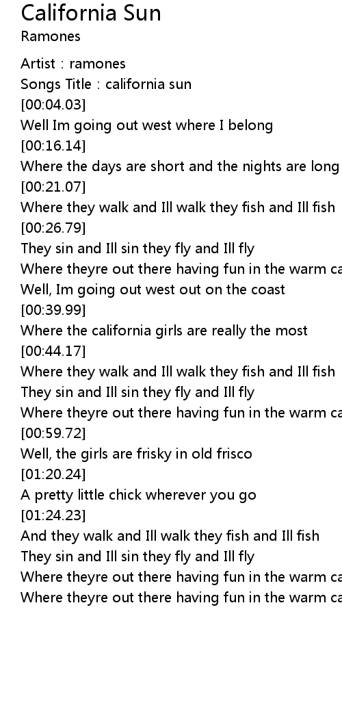 California Sun Lyrics Follow Lyrics